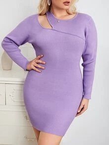 فستان صوفي محبوك محبوك مضلع مقصوص مقاس كبير