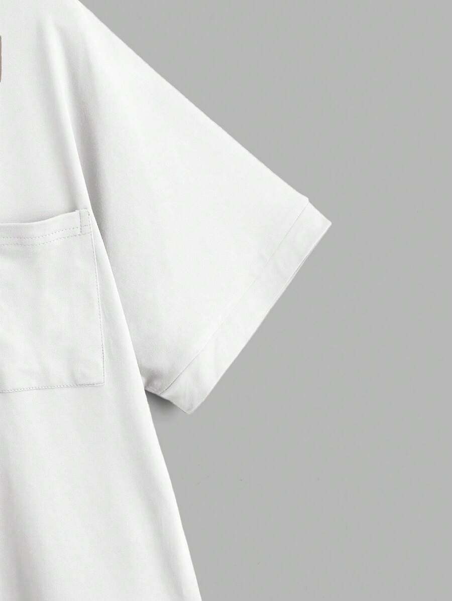 تي شيرت بالجيب والحافة المنخفضة والقياس الكبير