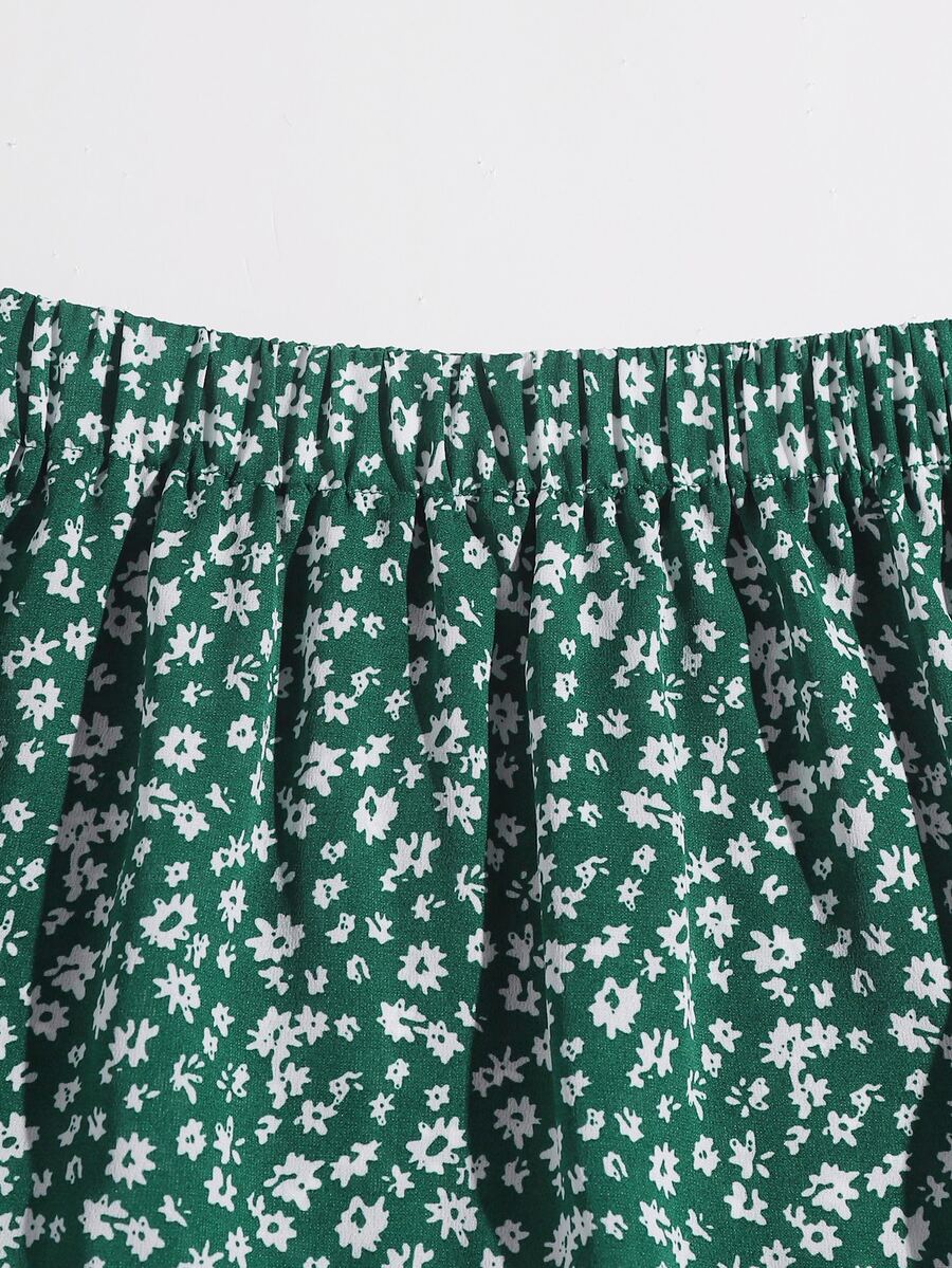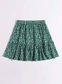 مقاس كبير تنورة بطباعة أزهار اقحوان حافة مكشكشة