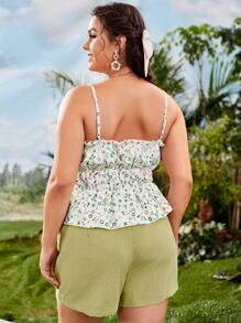 لباس علوي كامي بحافة مكشكش بتفاصيل مكشكش بزهر اقحوان مقاس كبير