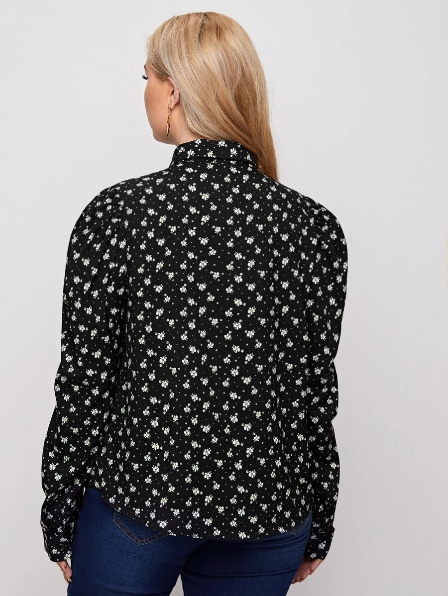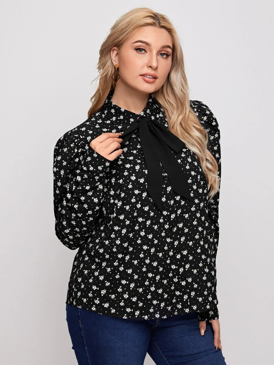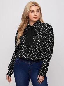 فستان بربطة عنق مزهر مقاس كبير