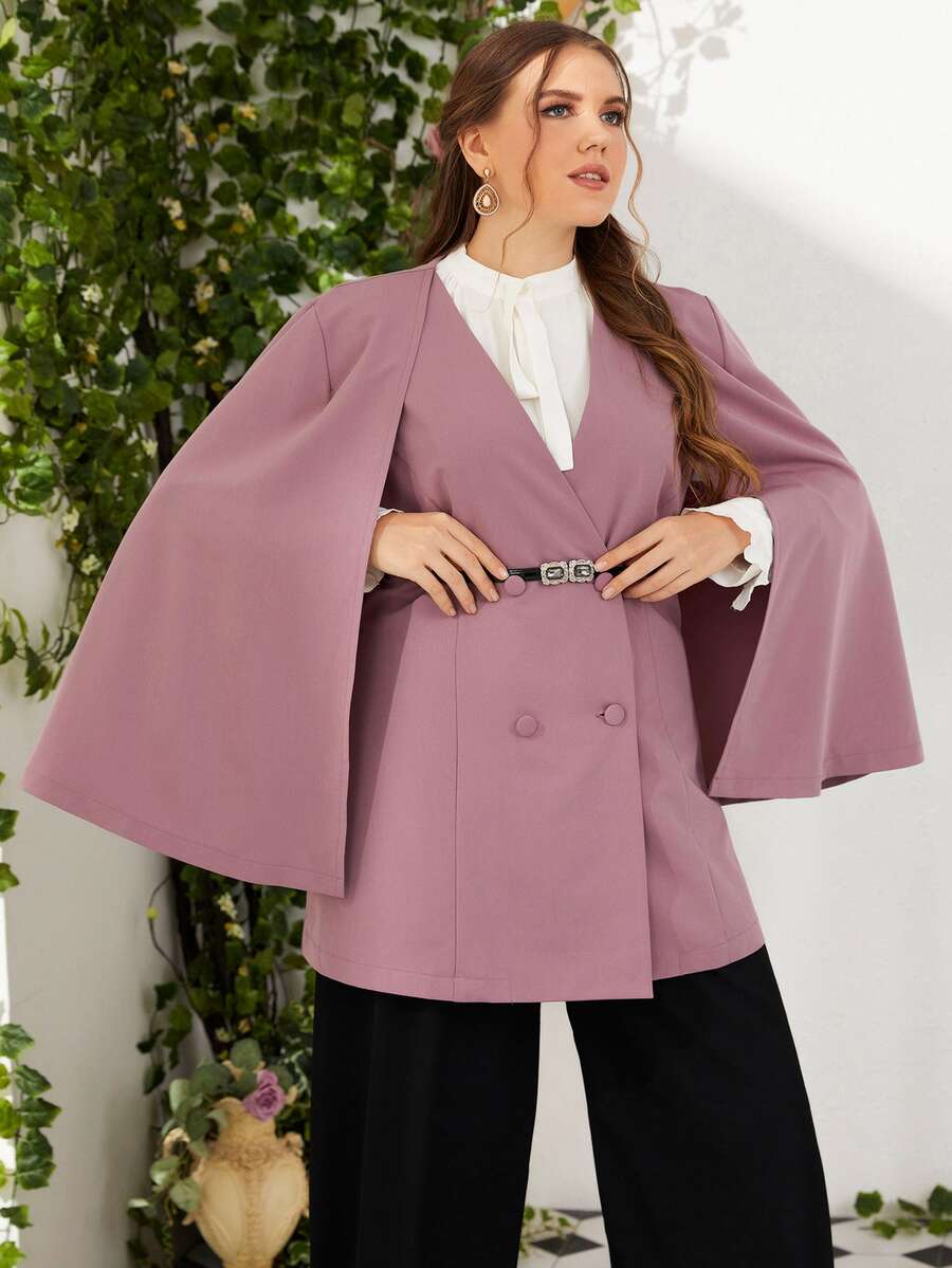 مقاس كبير بليزر كيب صف ازرار مزدوجة بدون حزام
