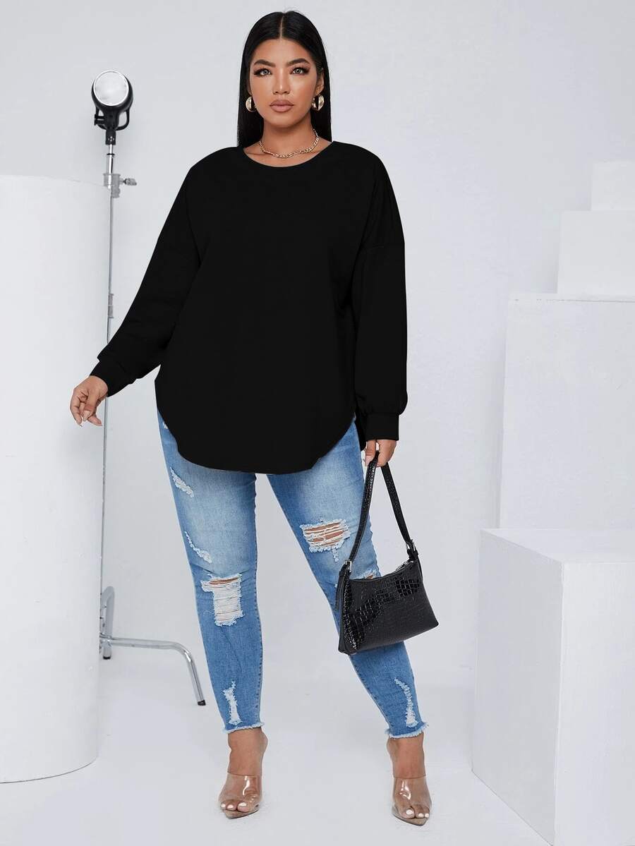قميص ثقيل باربطة خلفية متقاطعة منخفض الكتف مقاس كبير