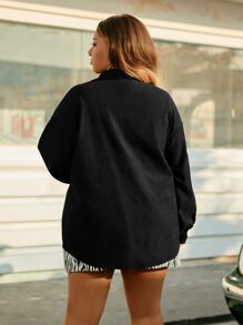 جاكيت كحلي اللون مع جيب صدري وياقة متساقطة من القطيفة، مناسب للشتاء