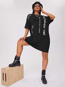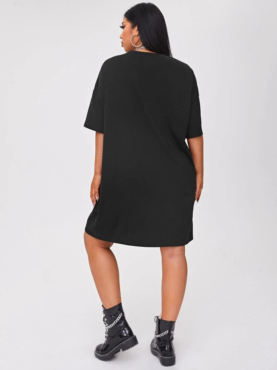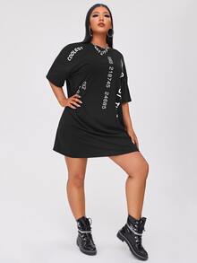 فستان تي شيرت مقاس كبير بجرافيك عبارة ومنخفض الكتف
