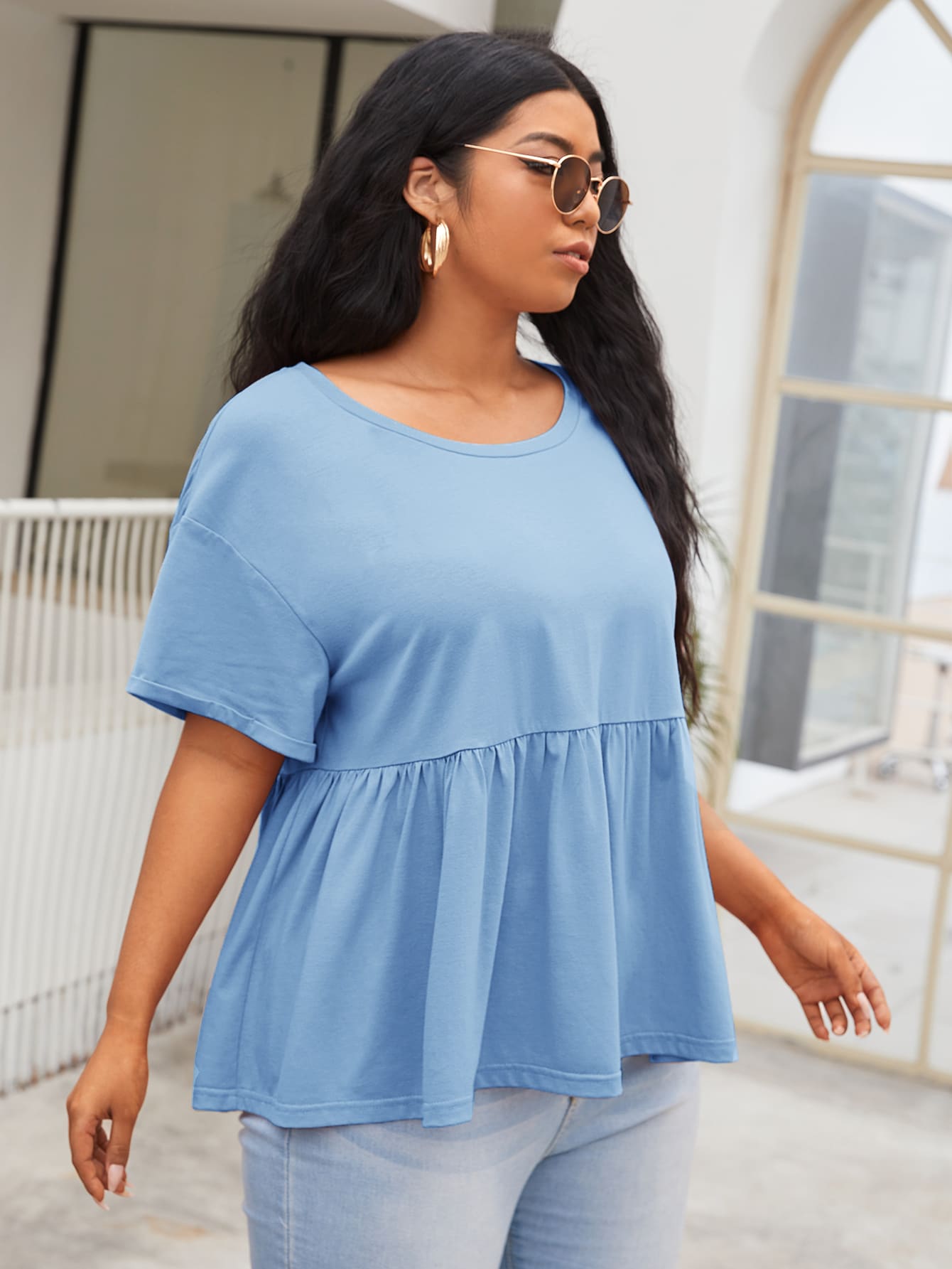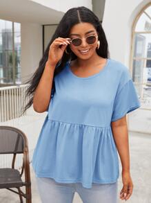 لباس علوي مطوي منخفض الاكتاف مقاس كبير