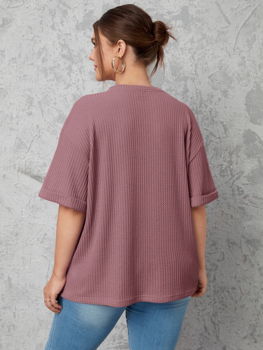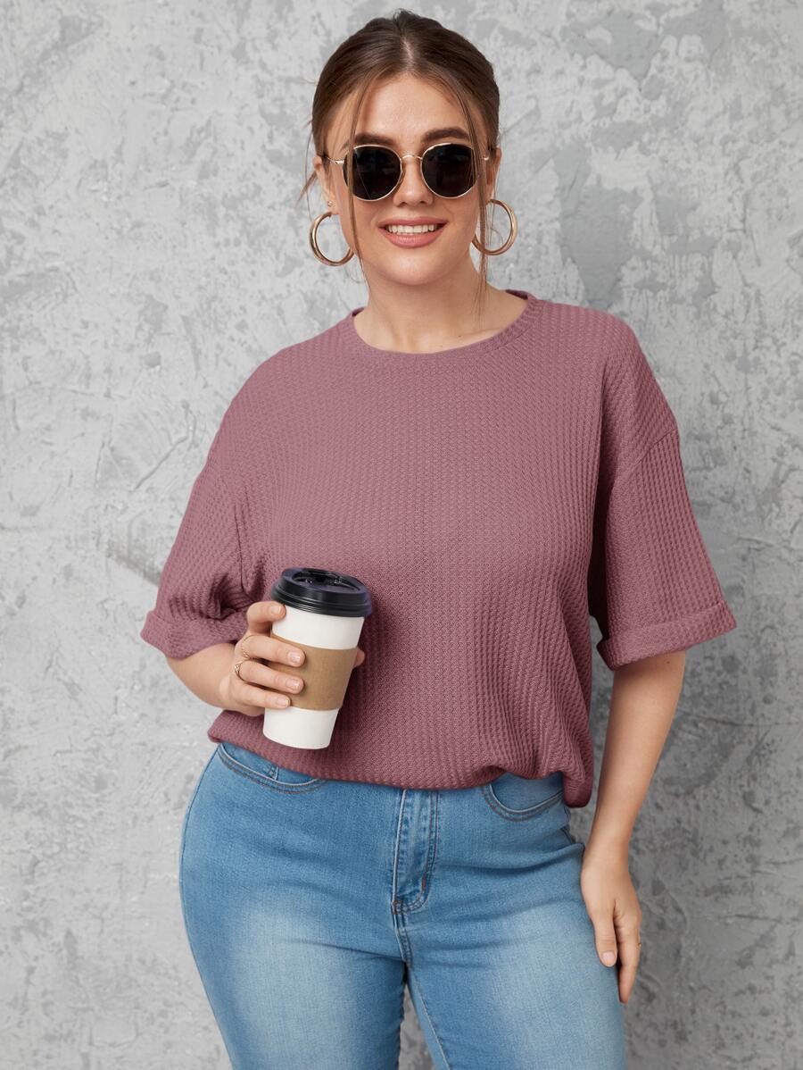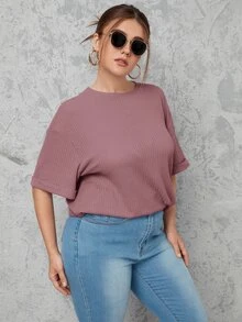 تي شيرت بلون موحد مقاس كبير منخفض الكتف