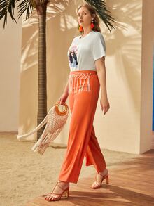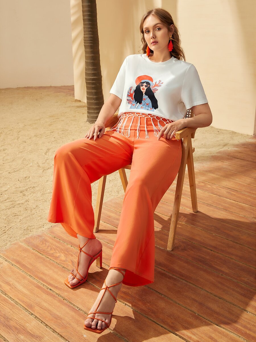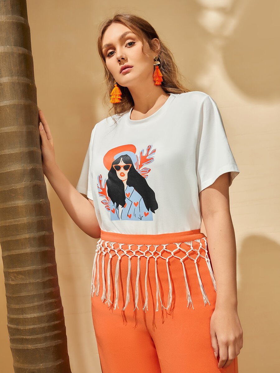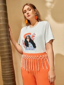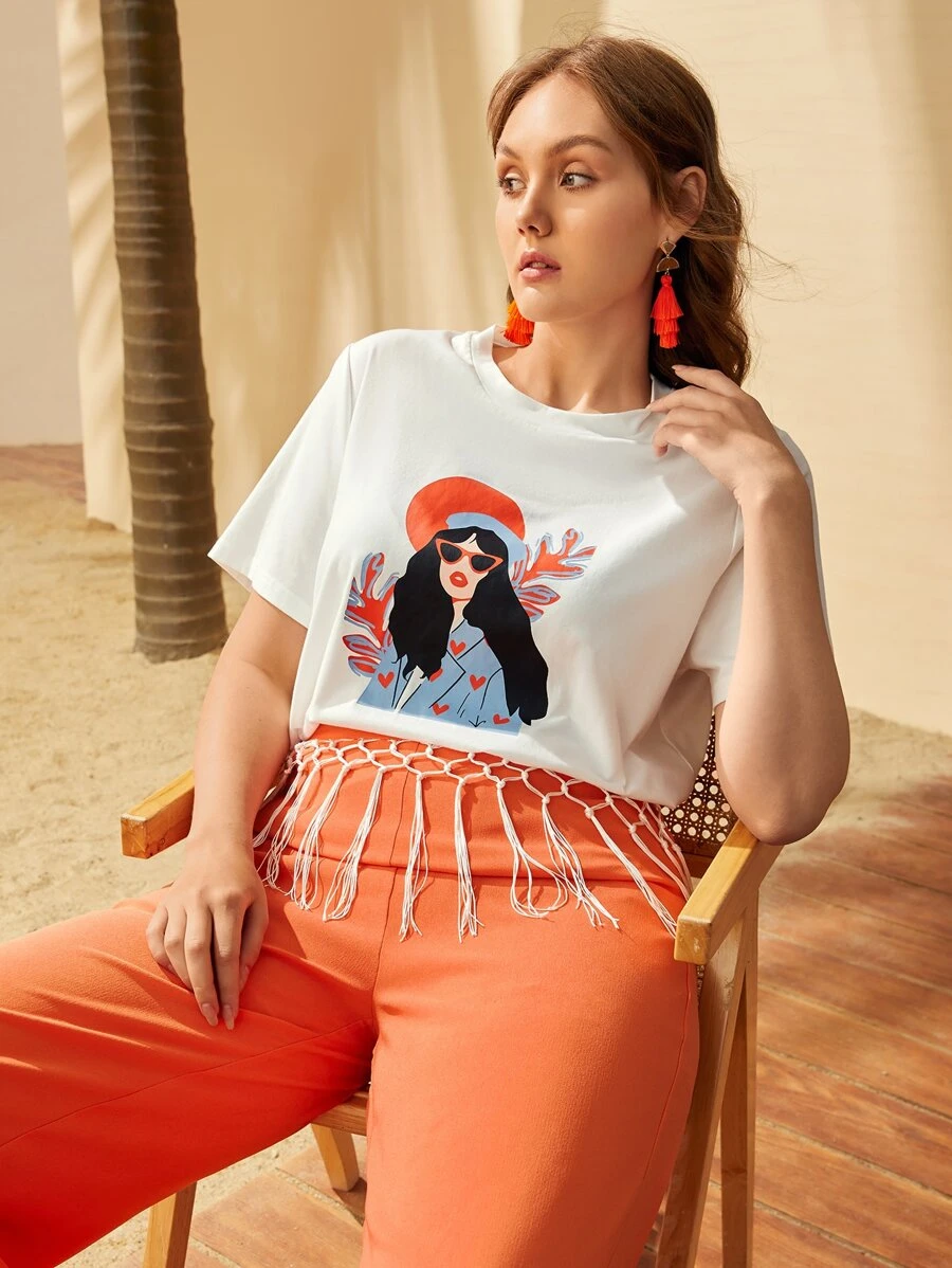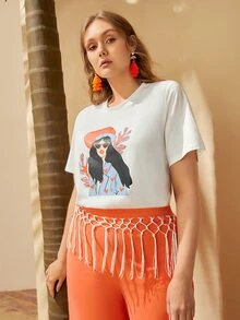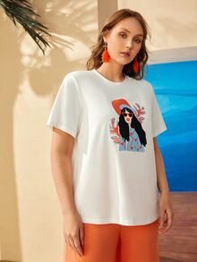 مقاس كبير تي شيرت جرافيك شكل حافة مكشكش