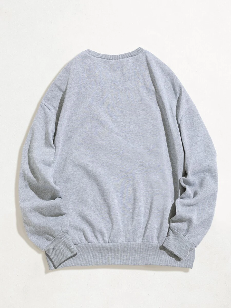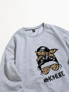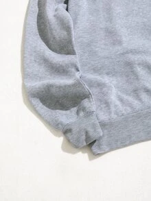 قميص ثقيل مبطن حراري منخفض الكتف بجرافيك عبارة وشخصية مقاس كبير