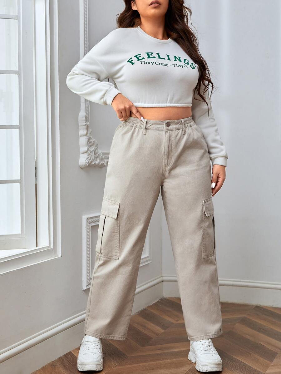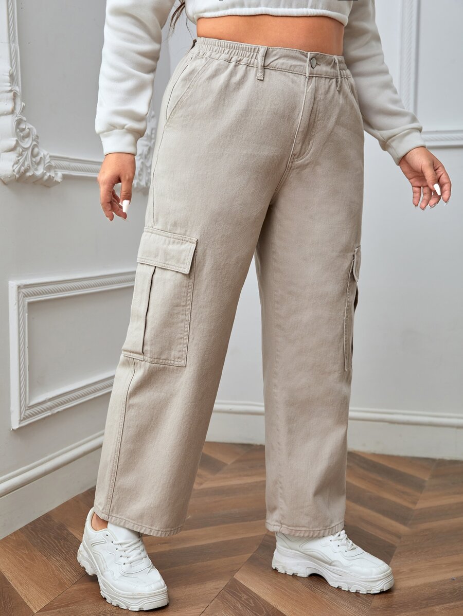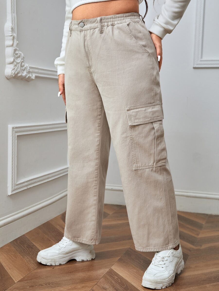بنطلون جينز كارجو جيب قلاب مقاس كبير