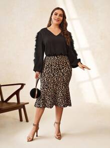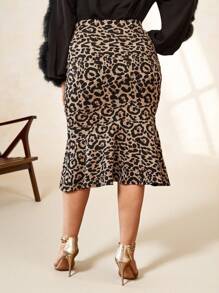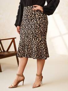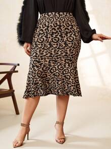تنورة نمط الفهد بحافة بقصة مقاس كبير