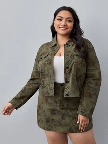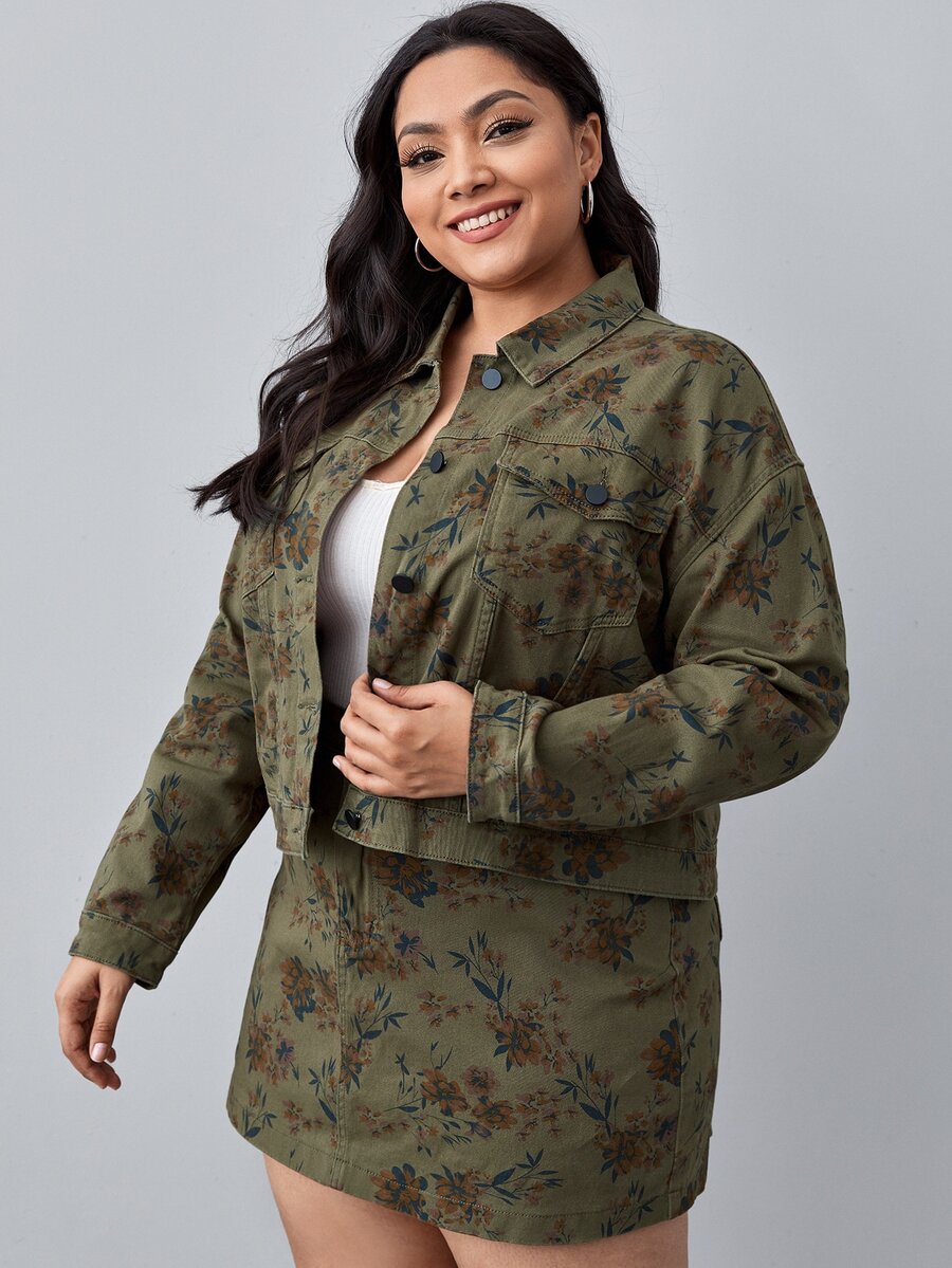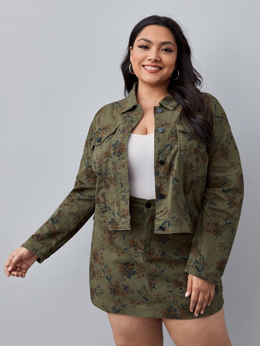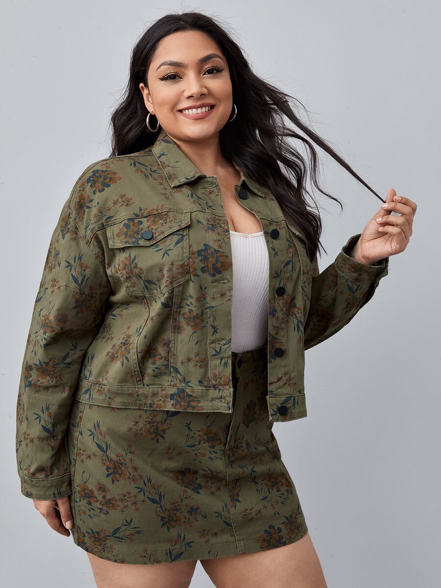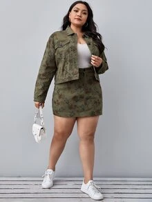 طقم مكون من قطعتين جينز حجم كبير الزر رسم الزهر كاجوال