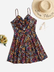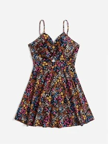 مقاس كبير فستان كامي بطباعة أزهار بتفاصيل مطوي