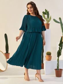فستان سادة بكسرات وأكمام مكشكشة مقاس كبير