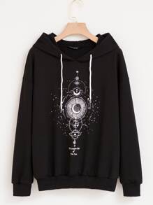 هودي مقاس كبير بأكتاف منخفض وبجرافيك جالاكسي وعبارة