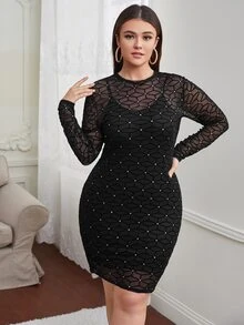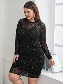 مقاس كبير شبكي هندسي فستان ضيق بدون لباس كامي فستان