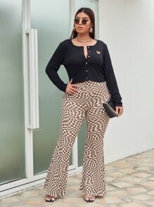 مقاس كبير بنطلون بساق واسع طباعة هندسية