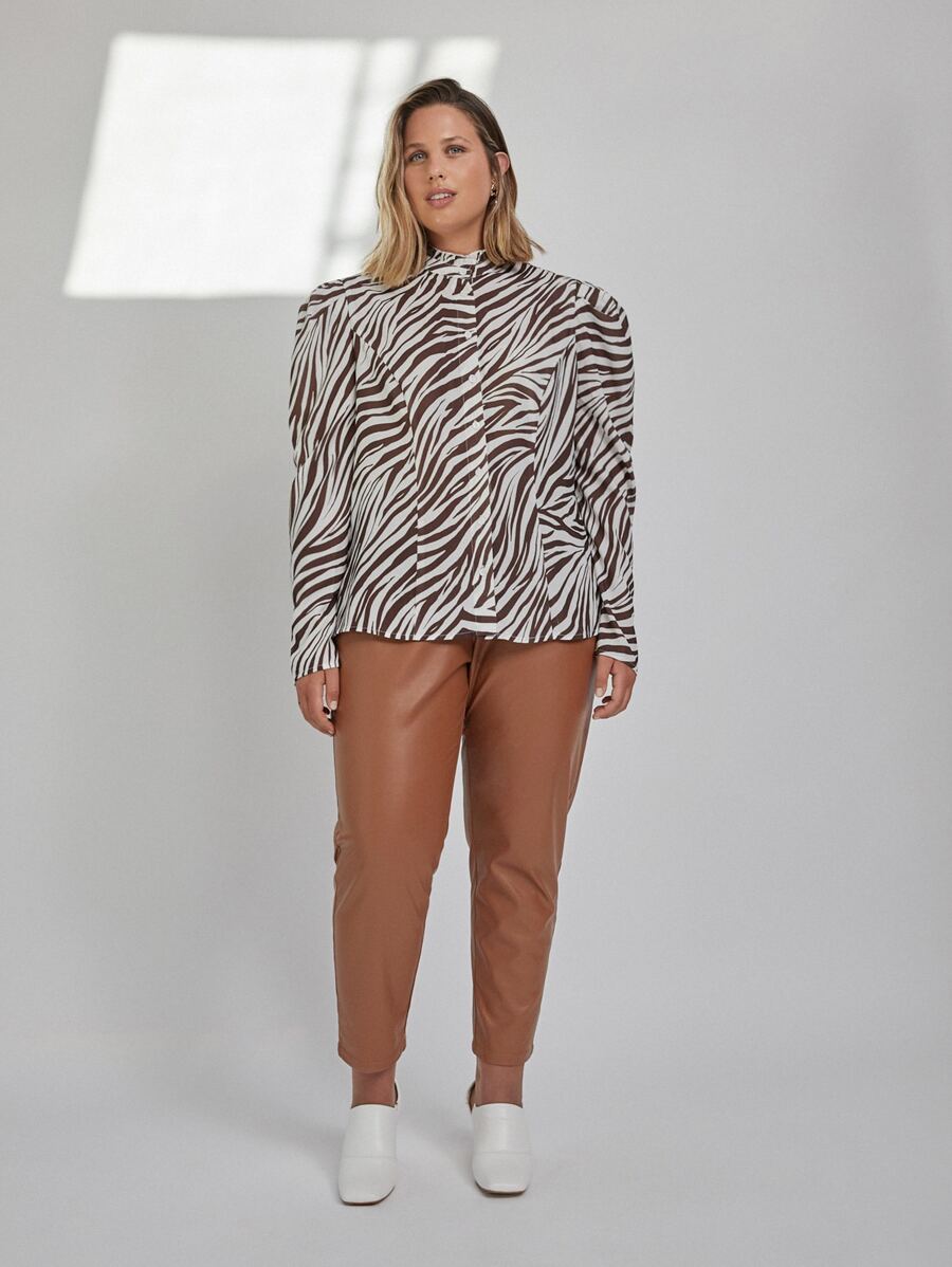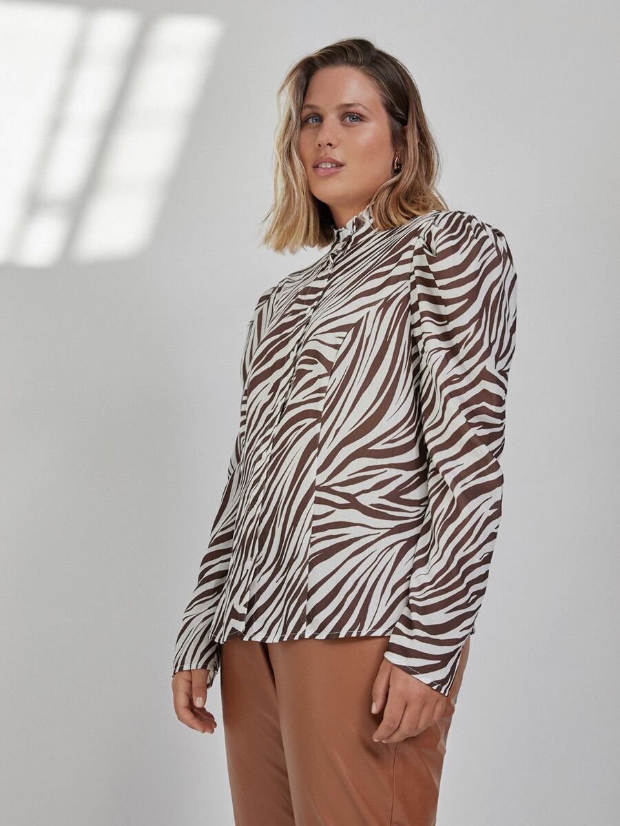 القميص بخط الحمار الوحشي وأكمام ساق الغنم والقياس الكبير