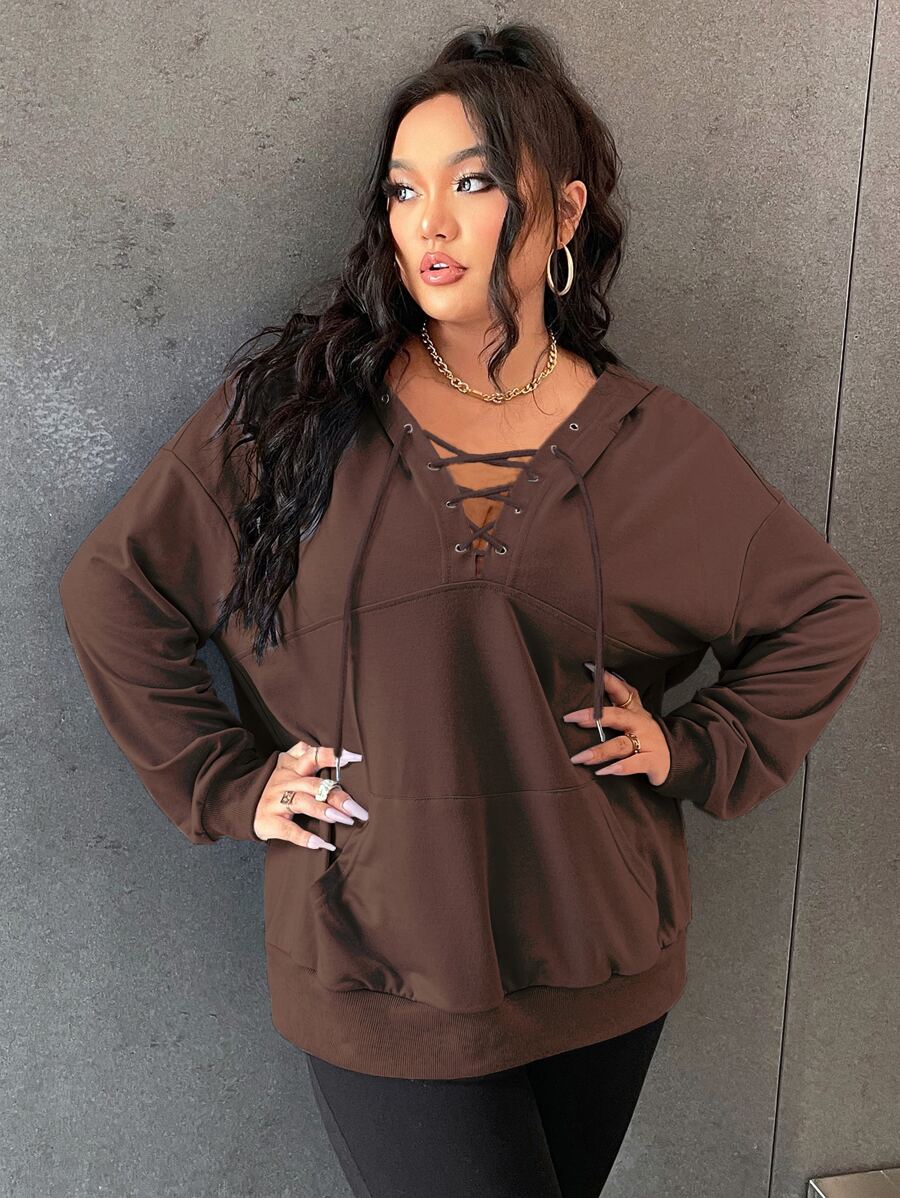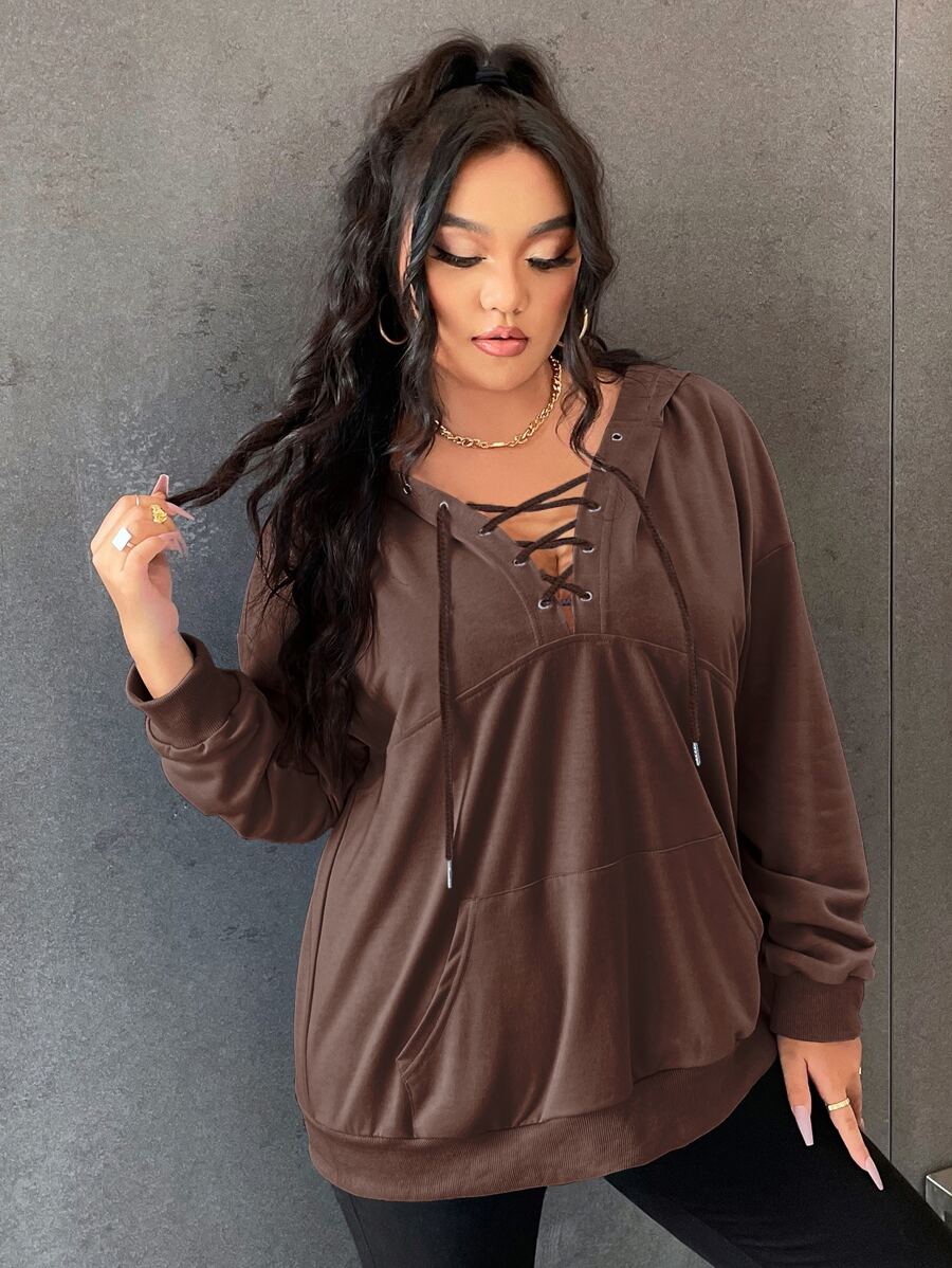 مقاس كبير هودي عروة رباط منخفض الاكتاف جيب الكنغر
