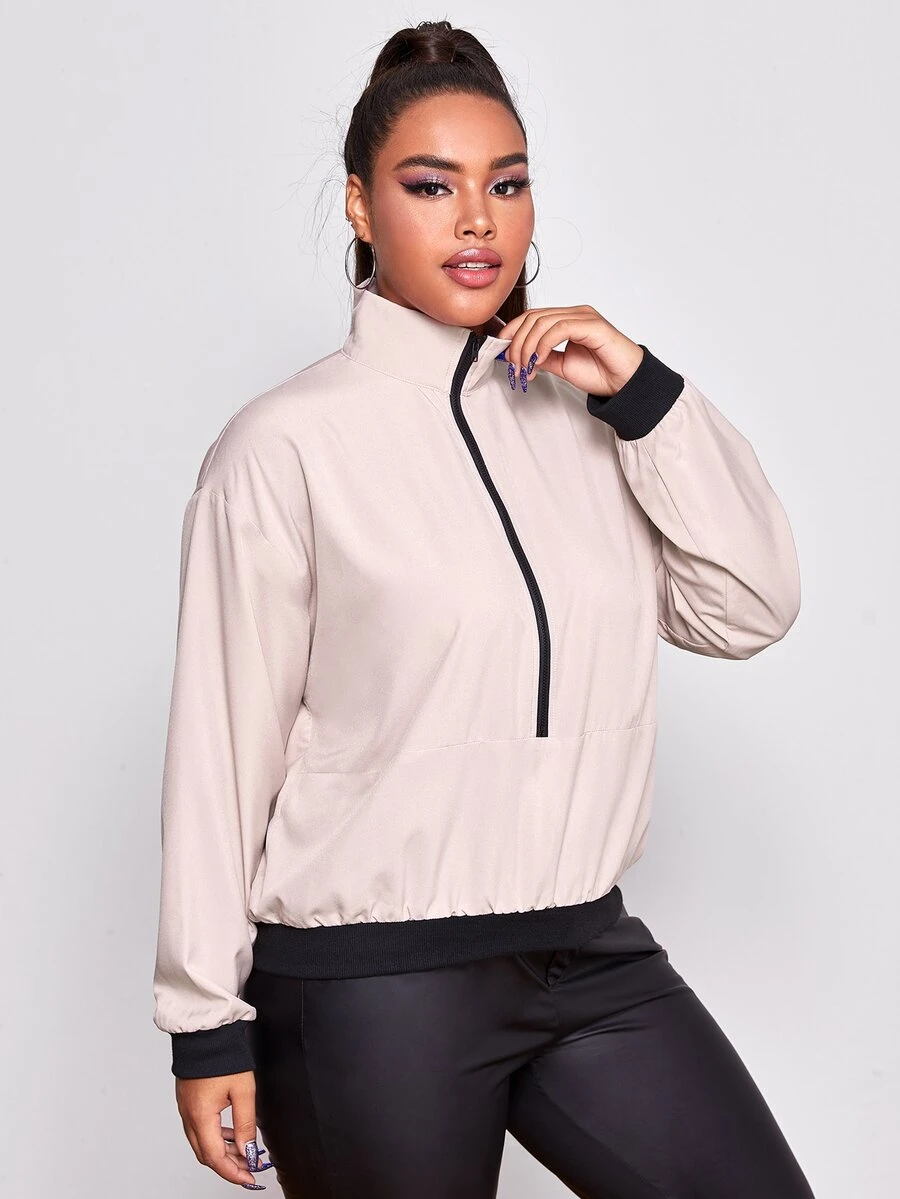 القميص الرياضي والياقة القمع بنصف السستة والقياس الكبير
