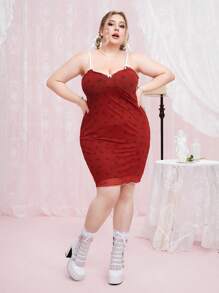 فستان كامي بطباعة قلب مقلم بهدب شبكة مقاس كبير