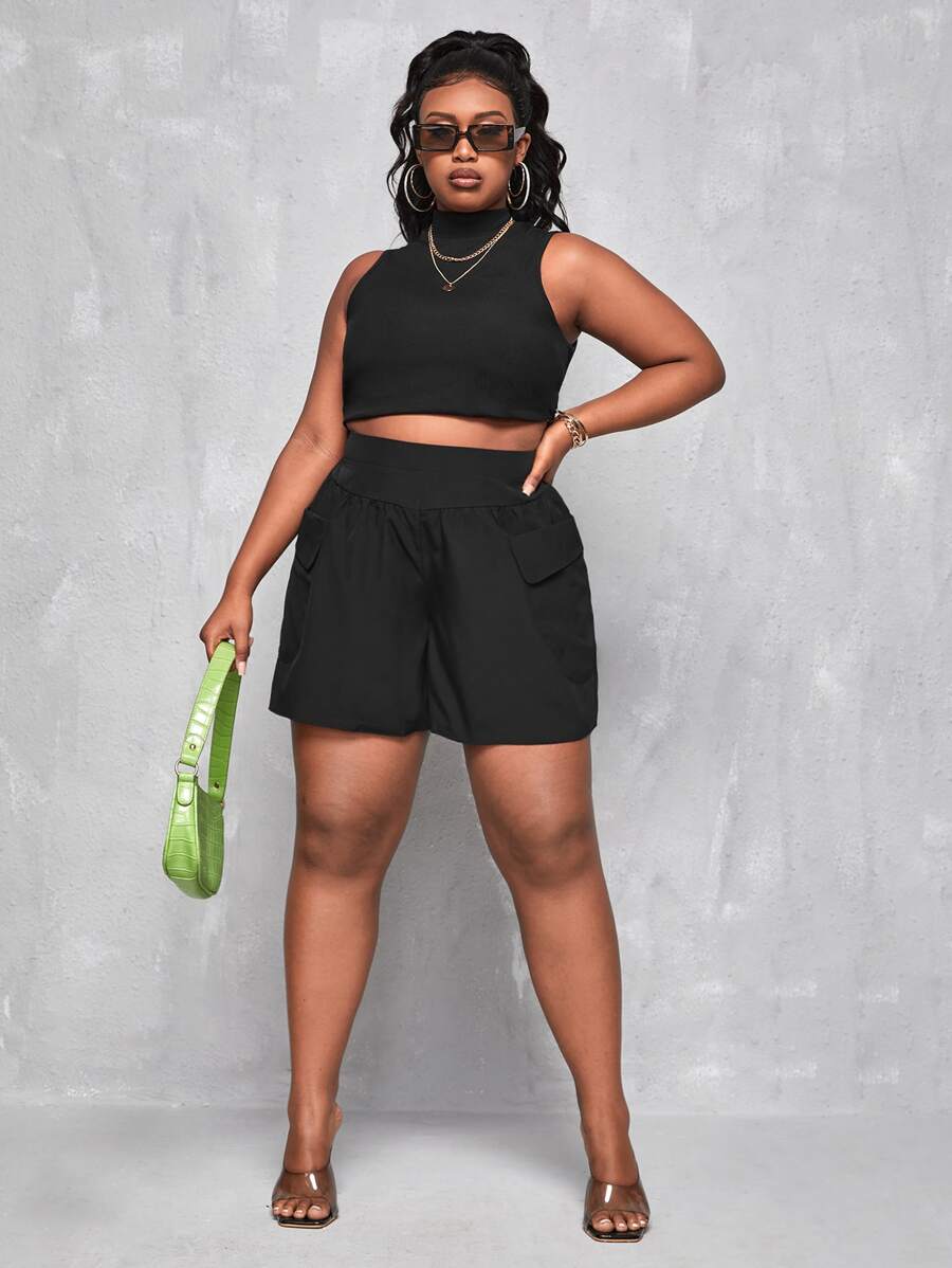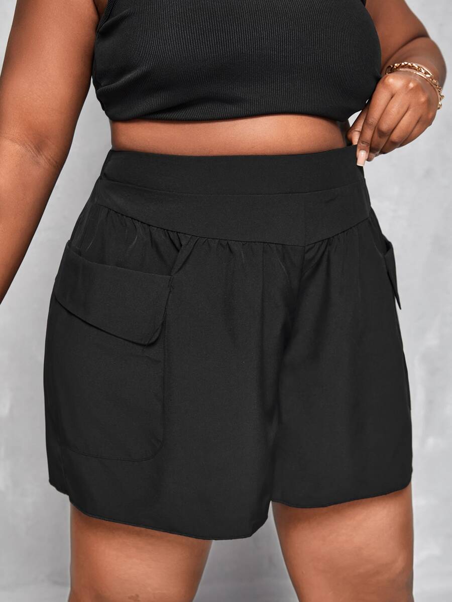 مقاس كبير بنطلون قصير خصر عالي جيب مزدوج