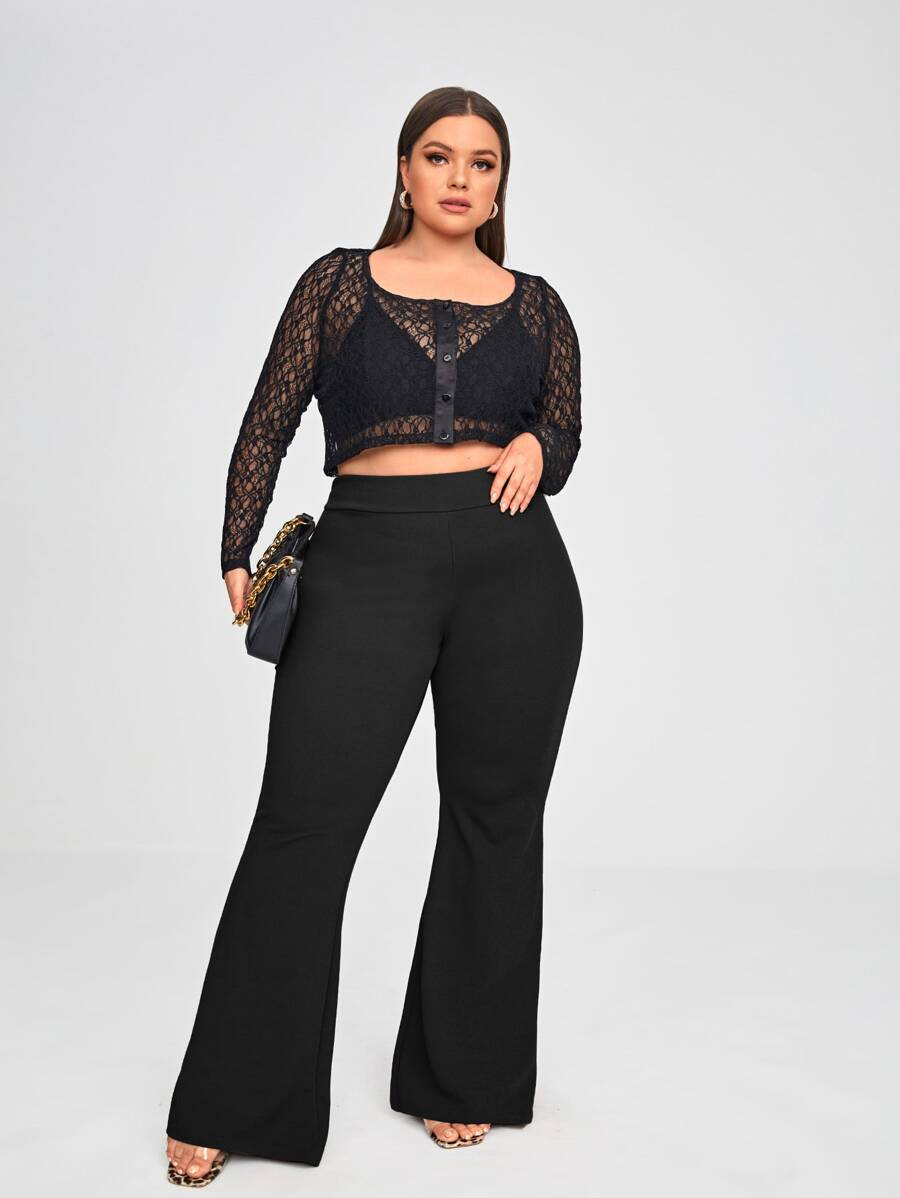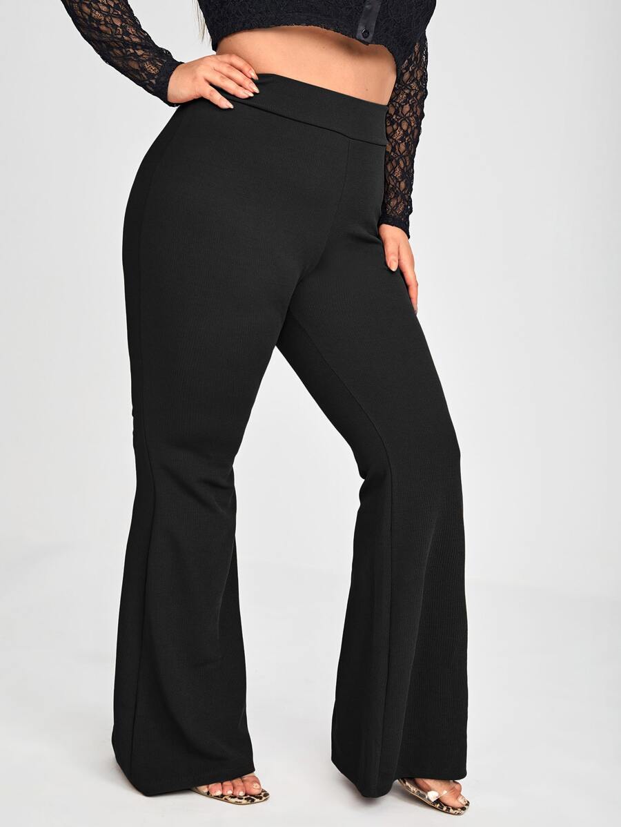 مقاس كبير بنطلون بساق واسع خصر عالي