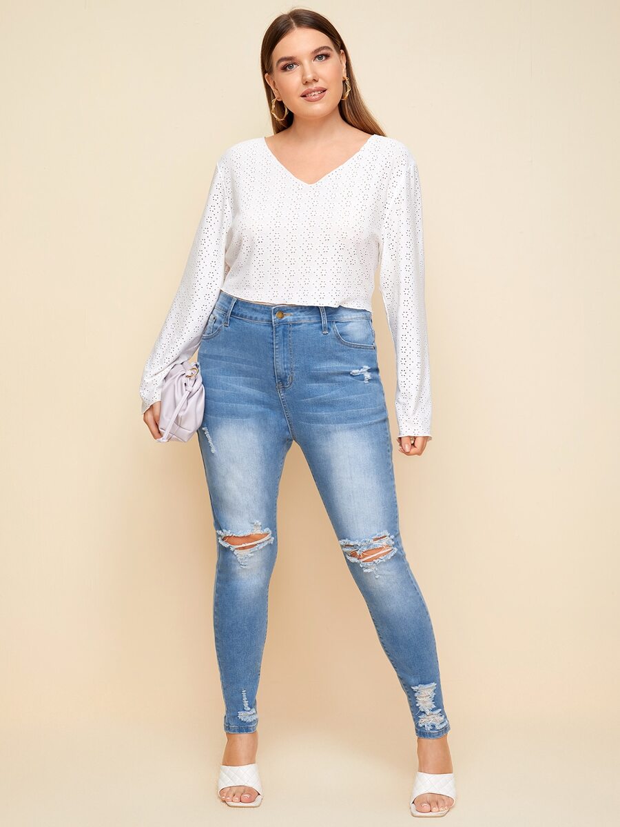 بنطلون جينز نحيف ممزق وبخصر عالي مقاس كبير
