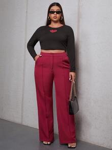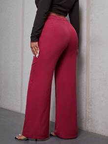 بنطلون بساق واسع وبخصر عالي مقاس كبير