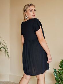 فستان سموك مطرز بزهر باكمام رفرف بعنق مفتوح مقاس كبير