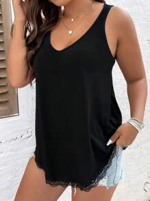 مقاس كبير لباس علوي تانك شريط دانتيل