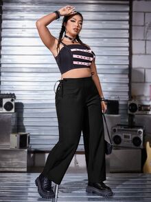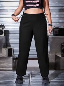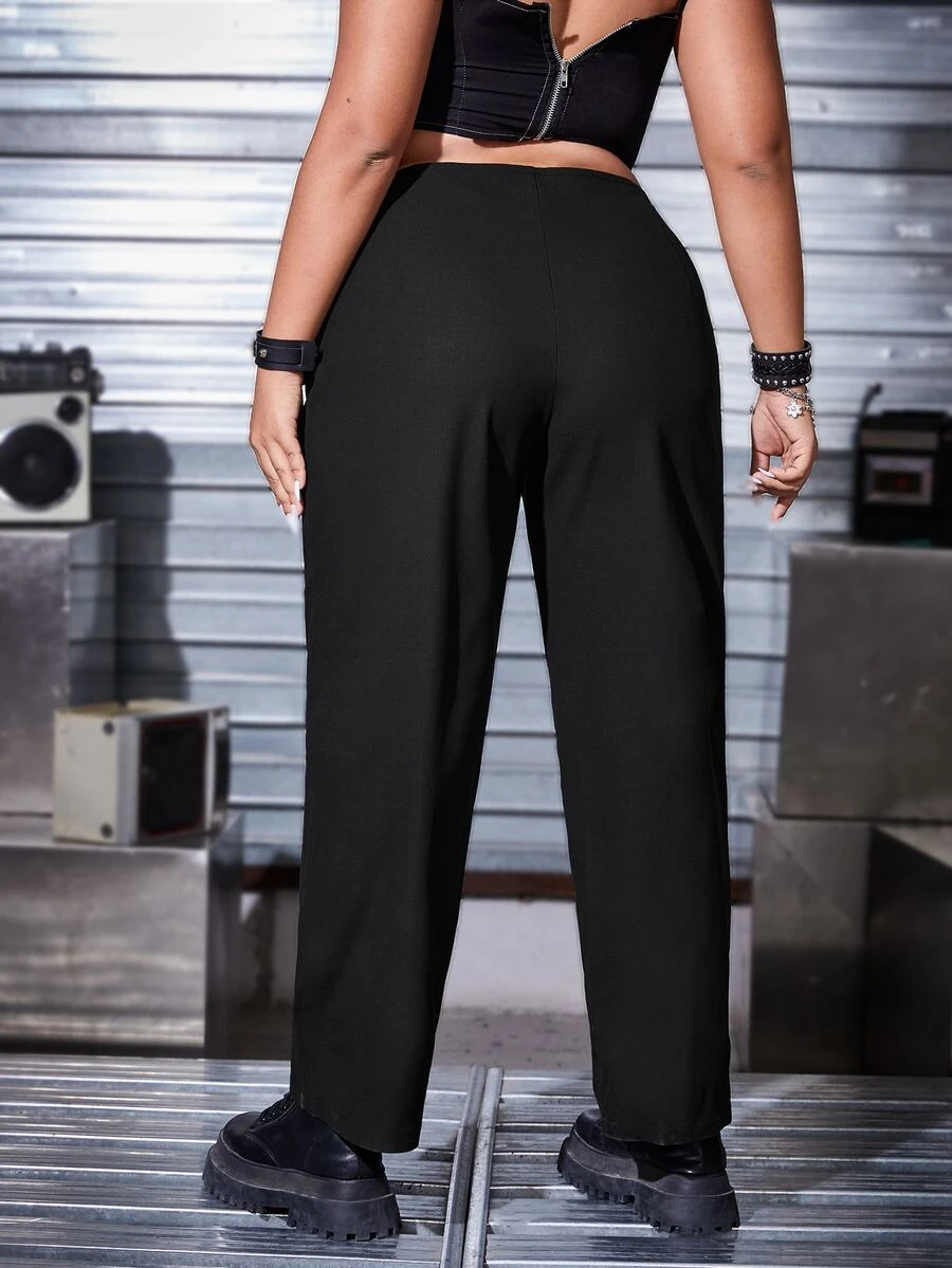 بنطلون بساق مستقيم رباط عروة جانبي مقاس كبير