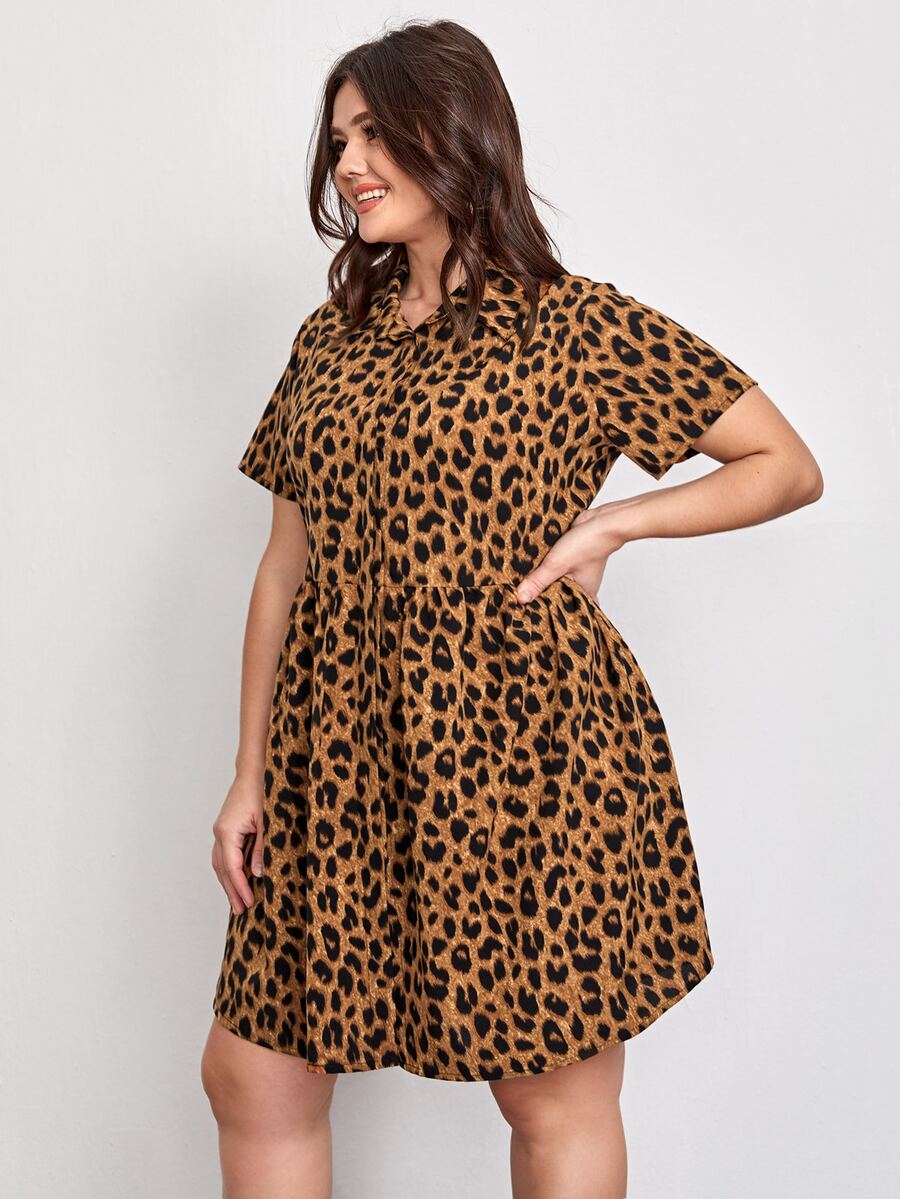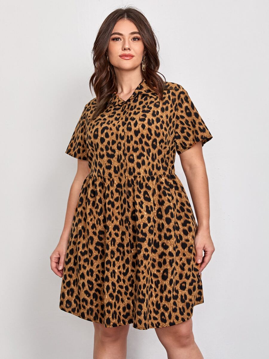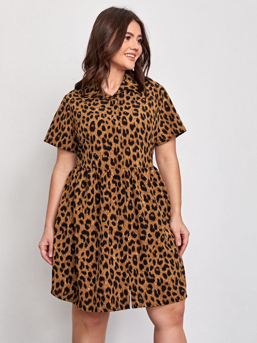 فستان سموك بطباعة الفهد مقاس كبير