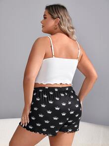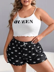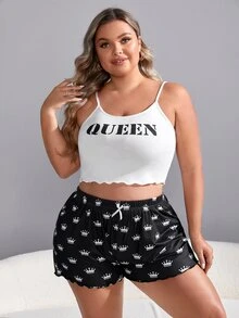 طقم بيجامة لباس علوي كامي وبنطلون القصير بطباعة أحرف مقلم نمط نبات الخس مقاس كبير