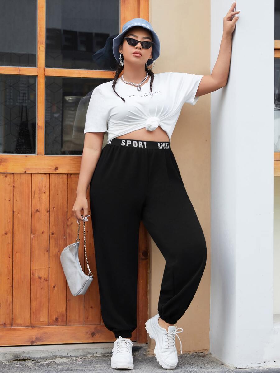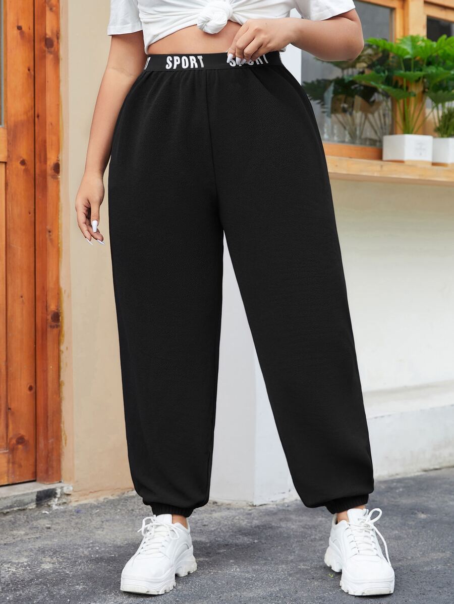 مقاس كبير بنطلون بشريط خصر عبارة