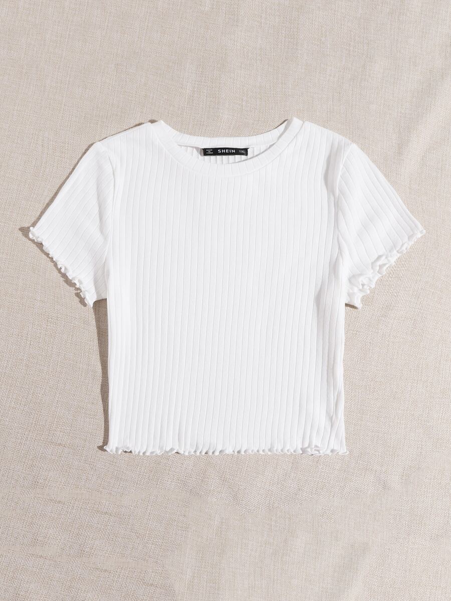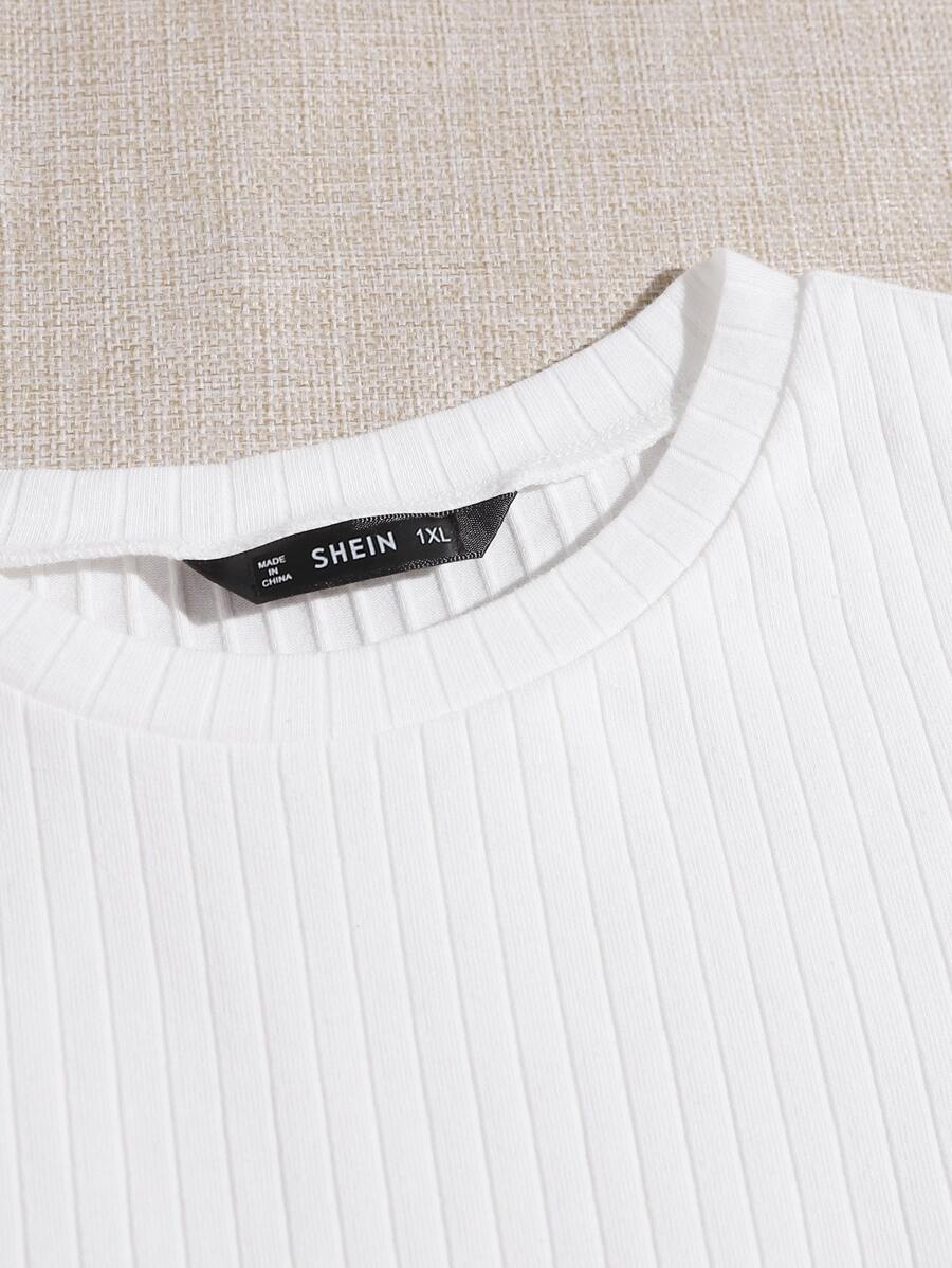 مقاس كبير تي شيرت مقلم نمط نبات الخس محبوك مضلع