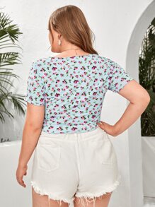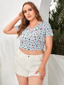 تي شيرت حجم كبير زينة على شكل نبات ازهار صغيرة كاجوال
