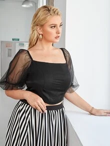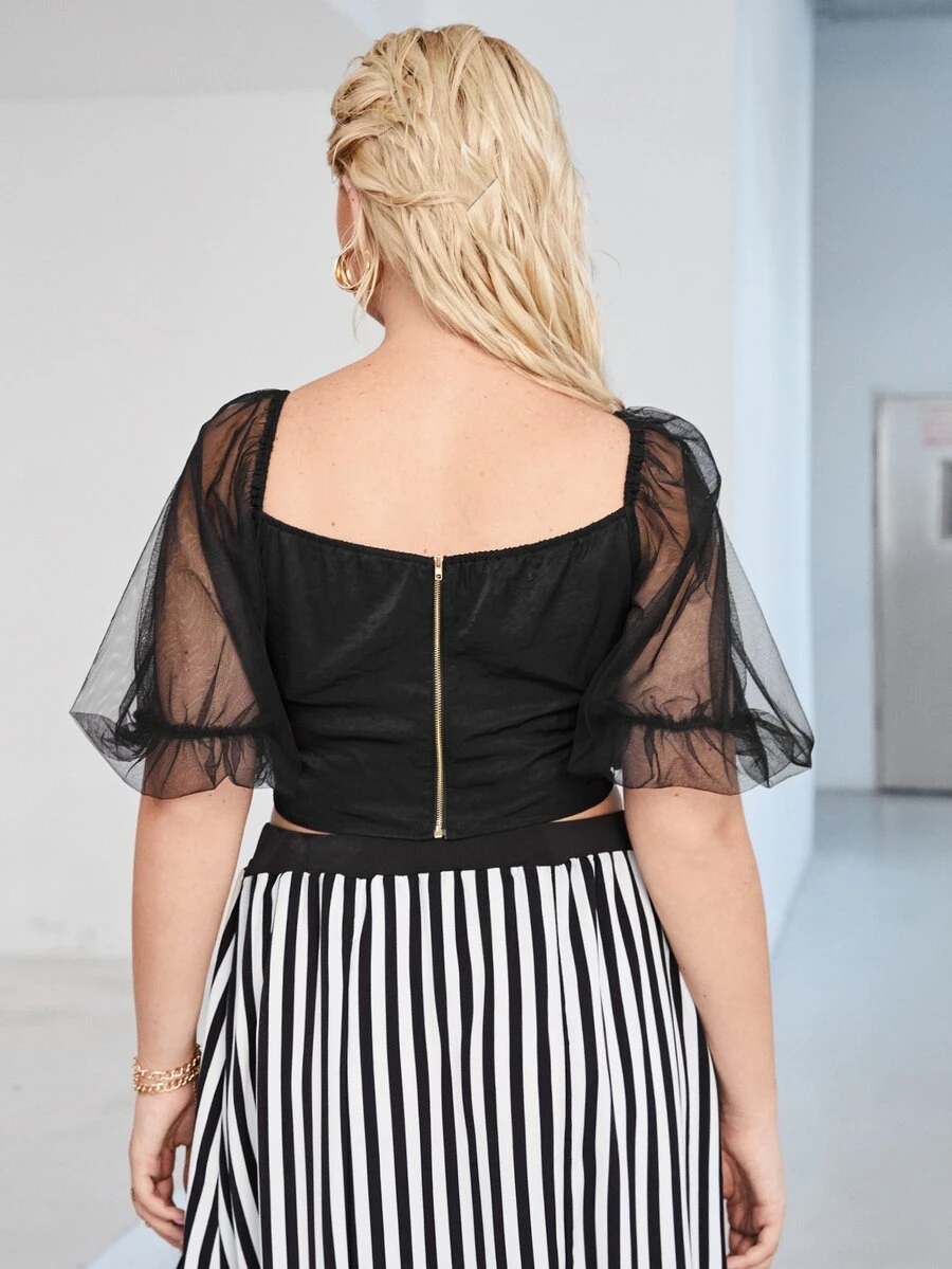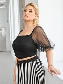 البسة علوية نسائية حجم كبير شبكة المتباين سستة الصاف كاجوال