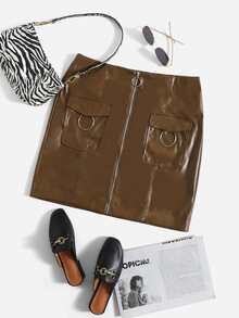 مقاس كبير تنانير بحلقة شكل O جيب قلاب سستة طائر جلد صناعي