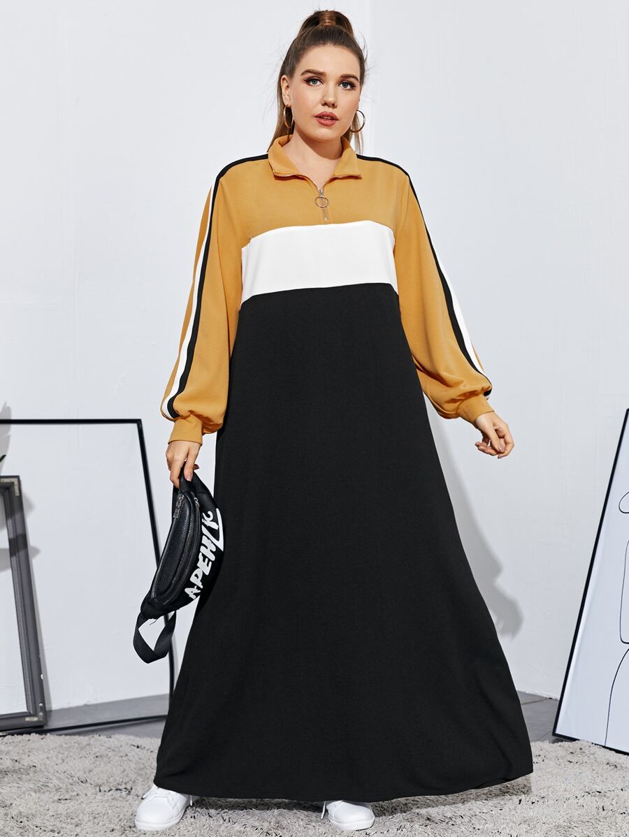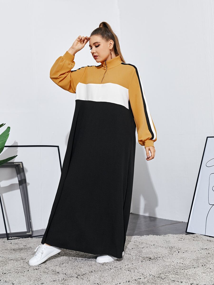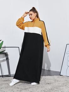 فستان مخطط جانبي بألوان متجانس بسستة وحلقة مقاس كبير