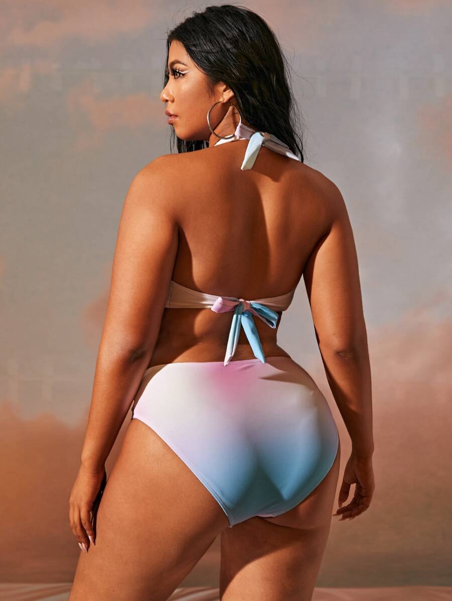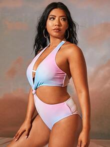 ملابس سباحة قطعة واحدة مقاس كبير بتفاصيل معقود ألوان متدرجة