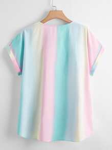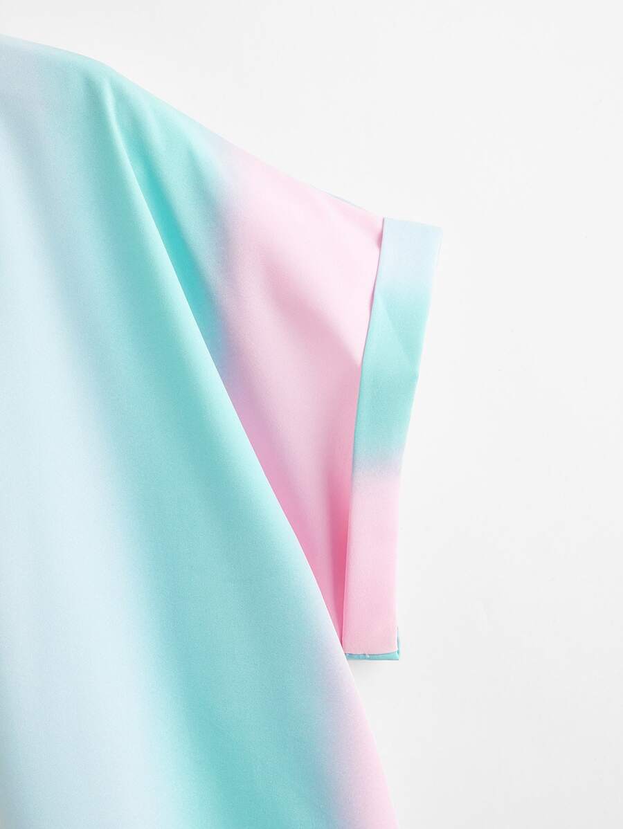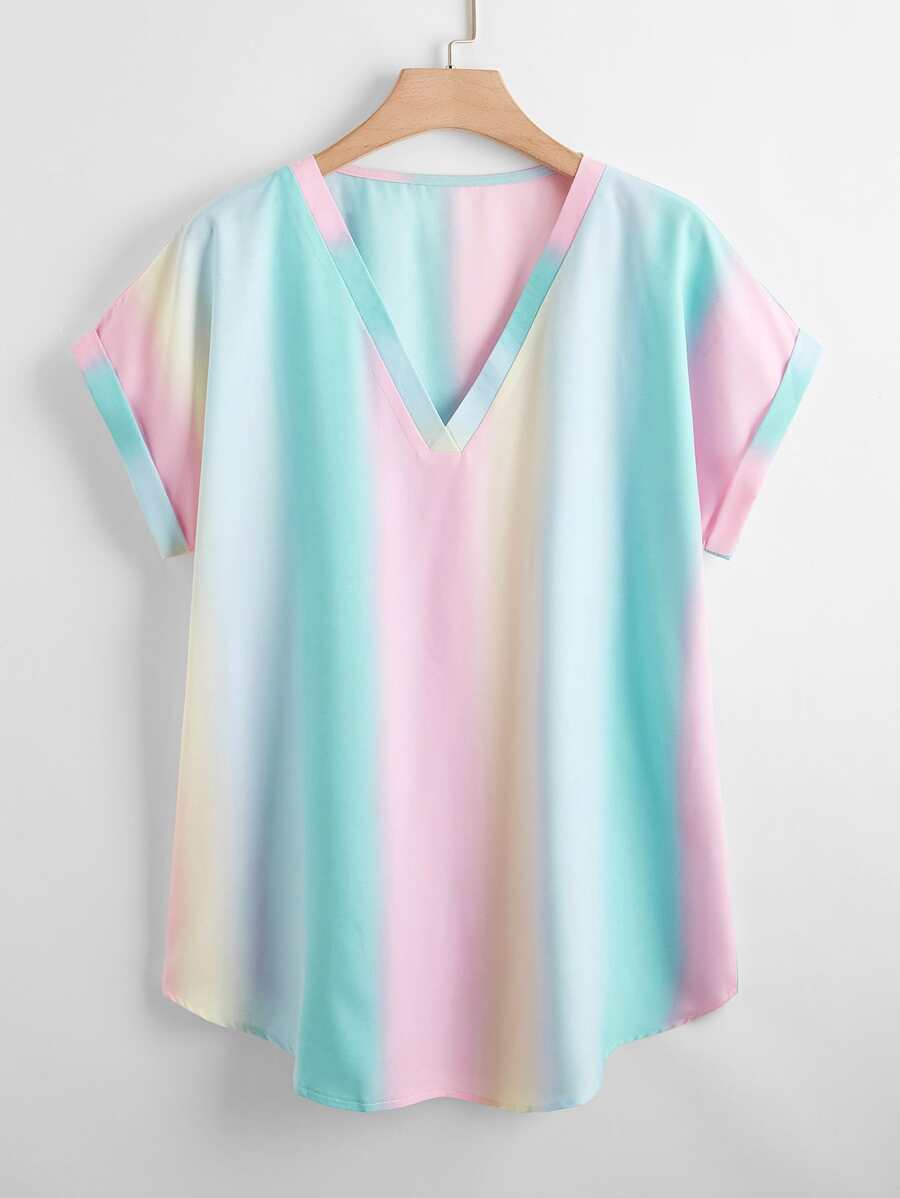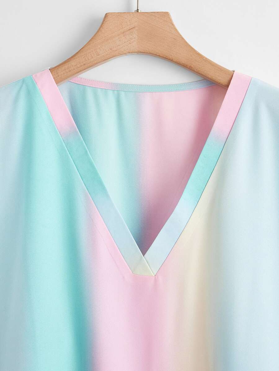 بلوزة باكمام واسعة بعنق V ألوان متدرجة مقاس كبير