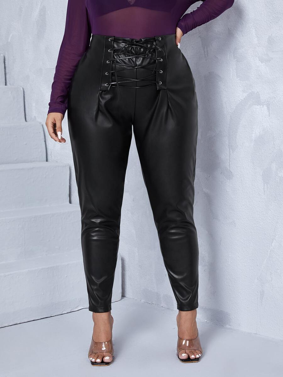 بنطلون نحيل بخصر برباط جلد صناعي مقاس كبير