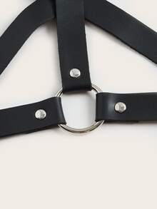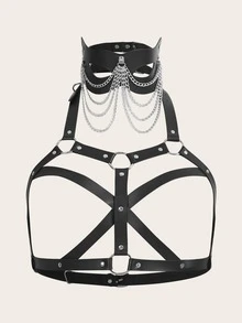 حمالة الصدر سرج جلد صناعي بحلقة شكل O و ديكور سلسلة مقاس كبير