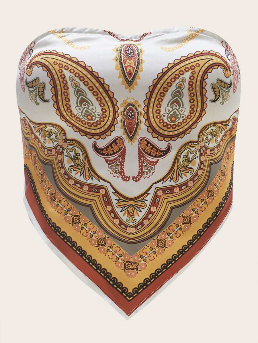 لباس علوي انبوب مكشوف الظهر بربطة بطباعة بيزلي مقاس كبير