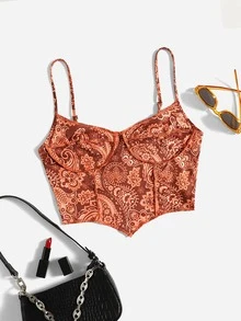 صدرية كامي طباعة بيزلي شريط منسوج حافة منديل مقاس كبير
