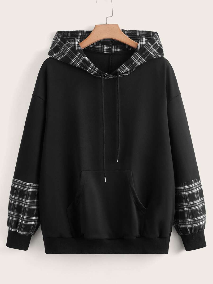 هودي مع جيوب وسحاب للربيع والشتاء مقاس كبير مع ألواح مربعة