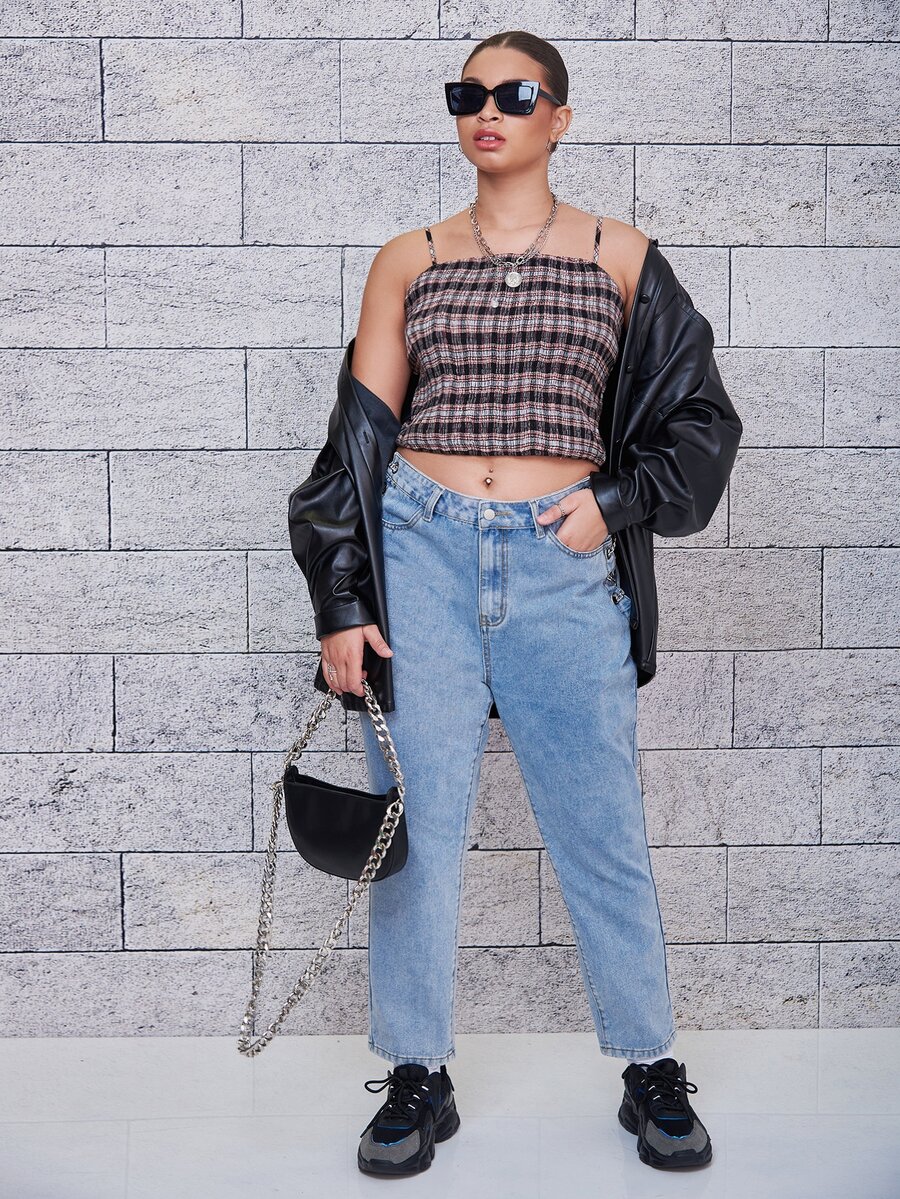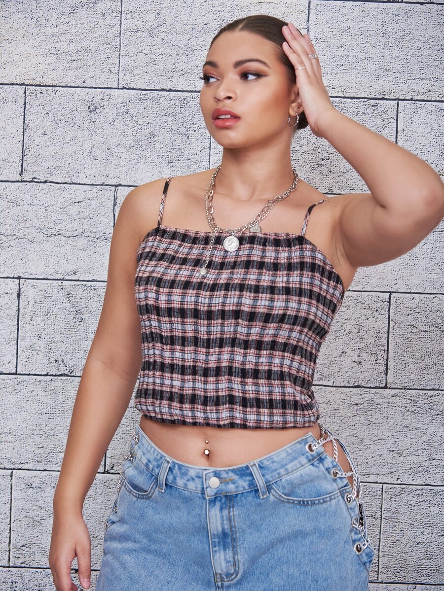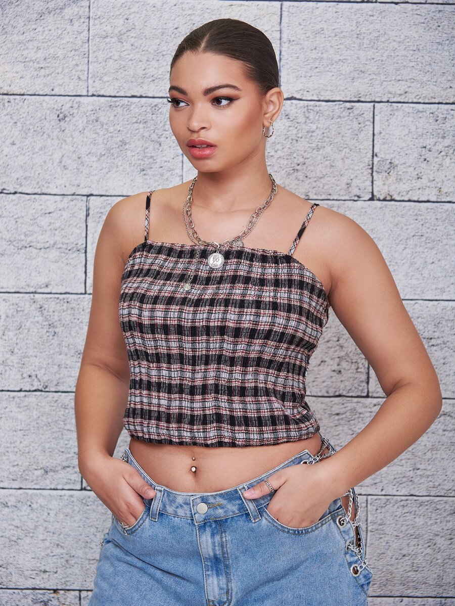 مقاس كبير لباس علوي كامي طباعة مربع النقش