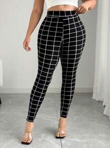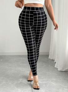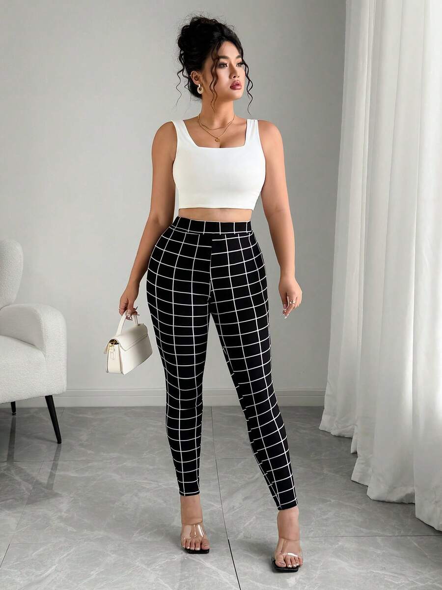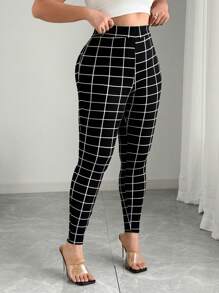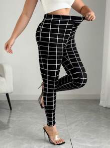 مقاس كبير بنطلون نحيل طباعة مربع النقش