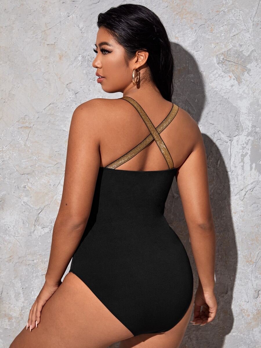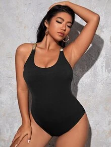 ملابس سباحة قطعة واحدة سادة مقاس كبير